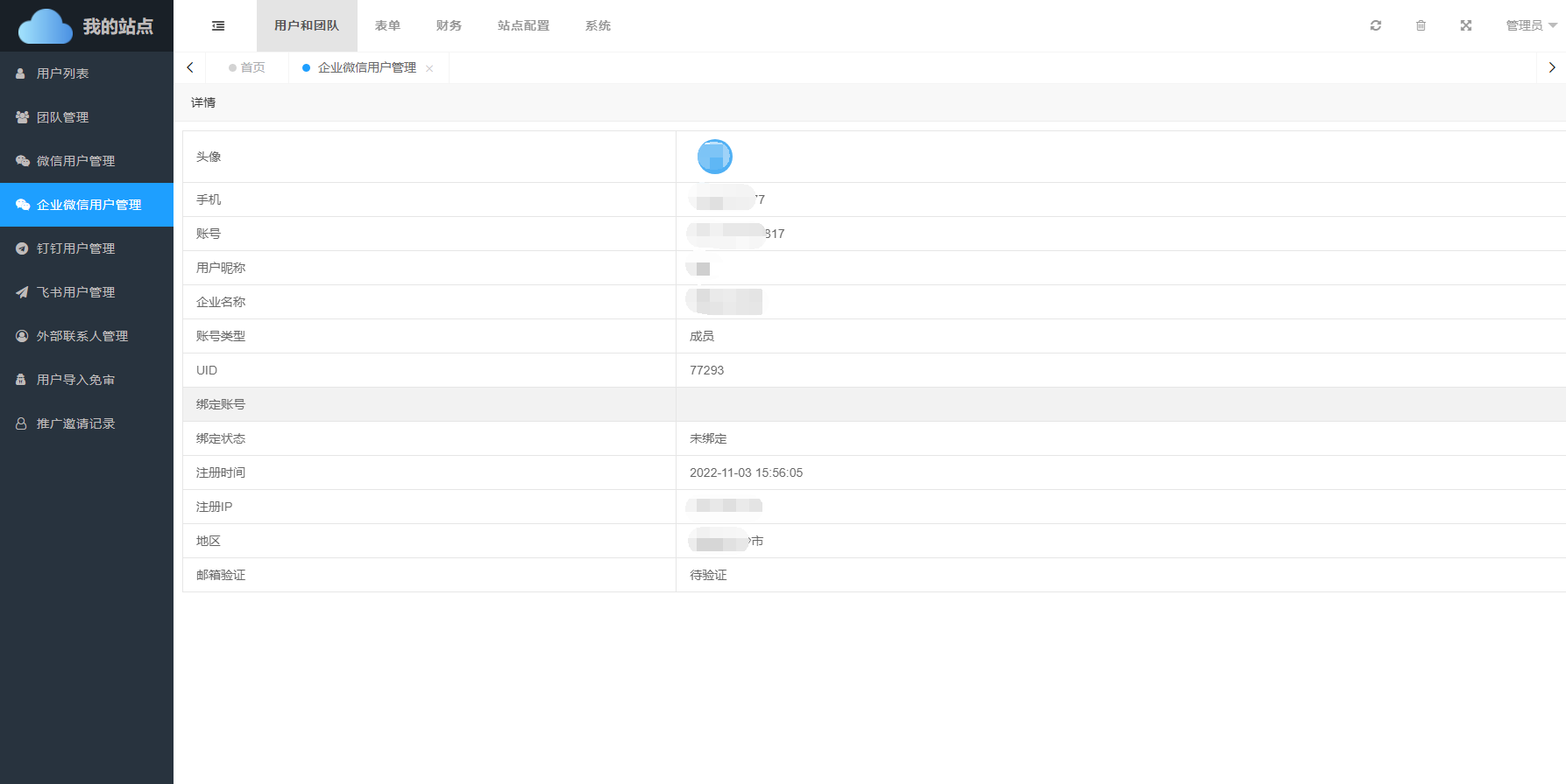 可以在当前页面对使用企业微信作为组织架构进行表单使用的团队进行管理。