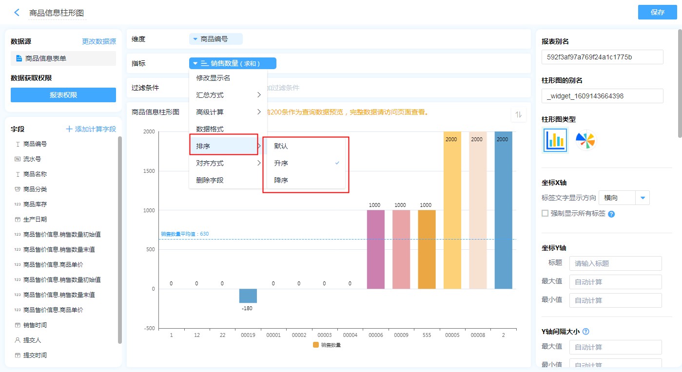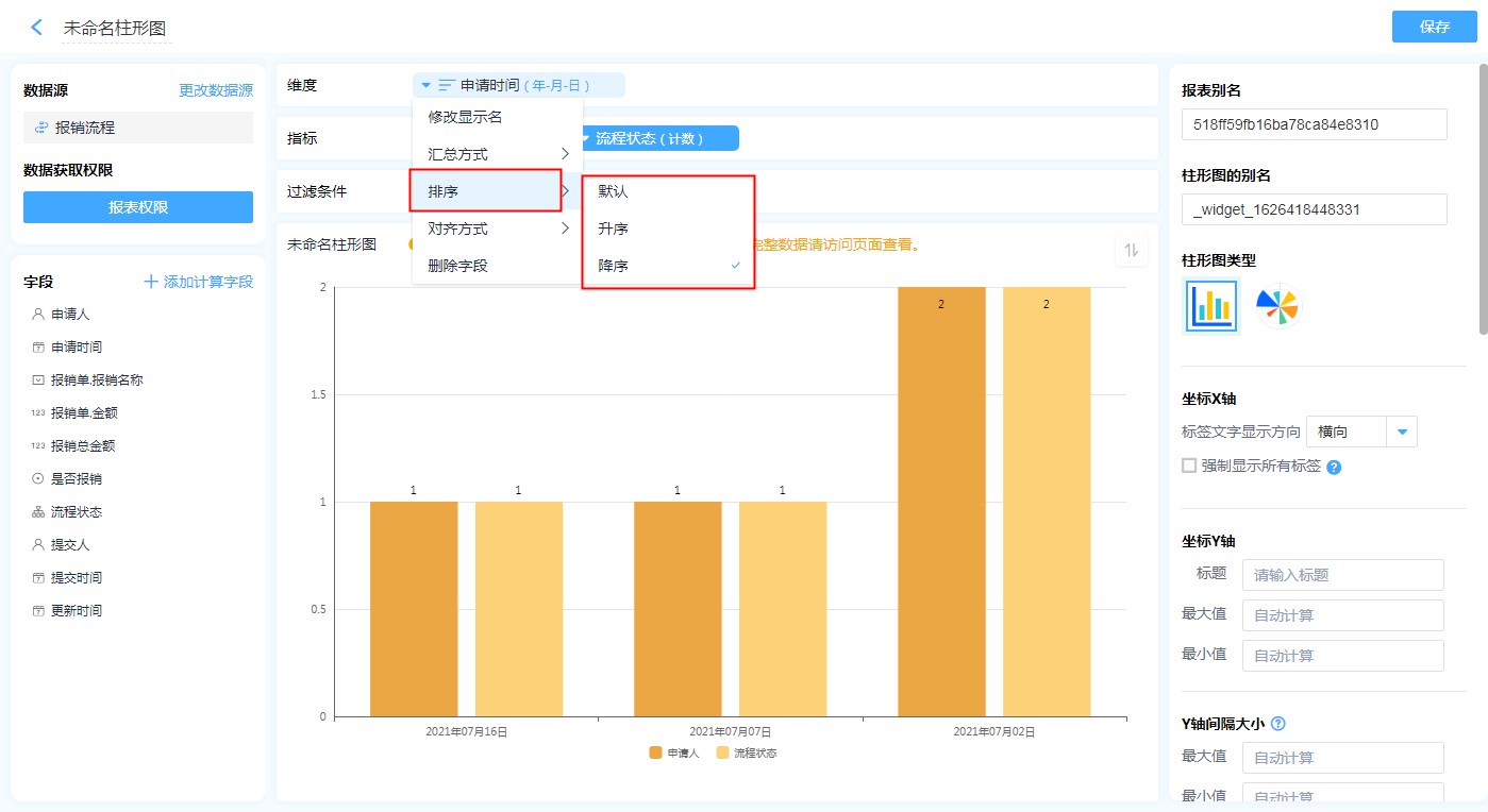在报表使用过程中,为了方便数据的查看与管理,往往需要对报表中的图表数据进行排序。