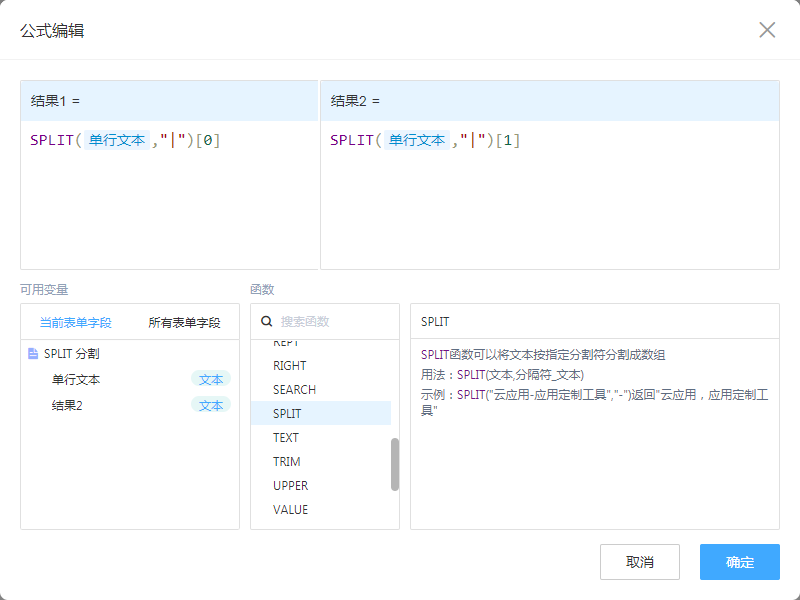 对"abc|123"文本内容进行拆分,分隔符"|"。
