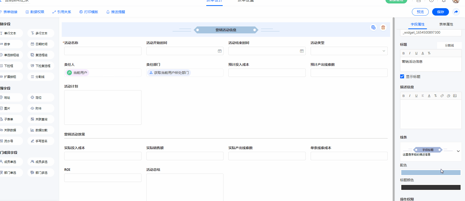 | 字段创建、表单预览 |