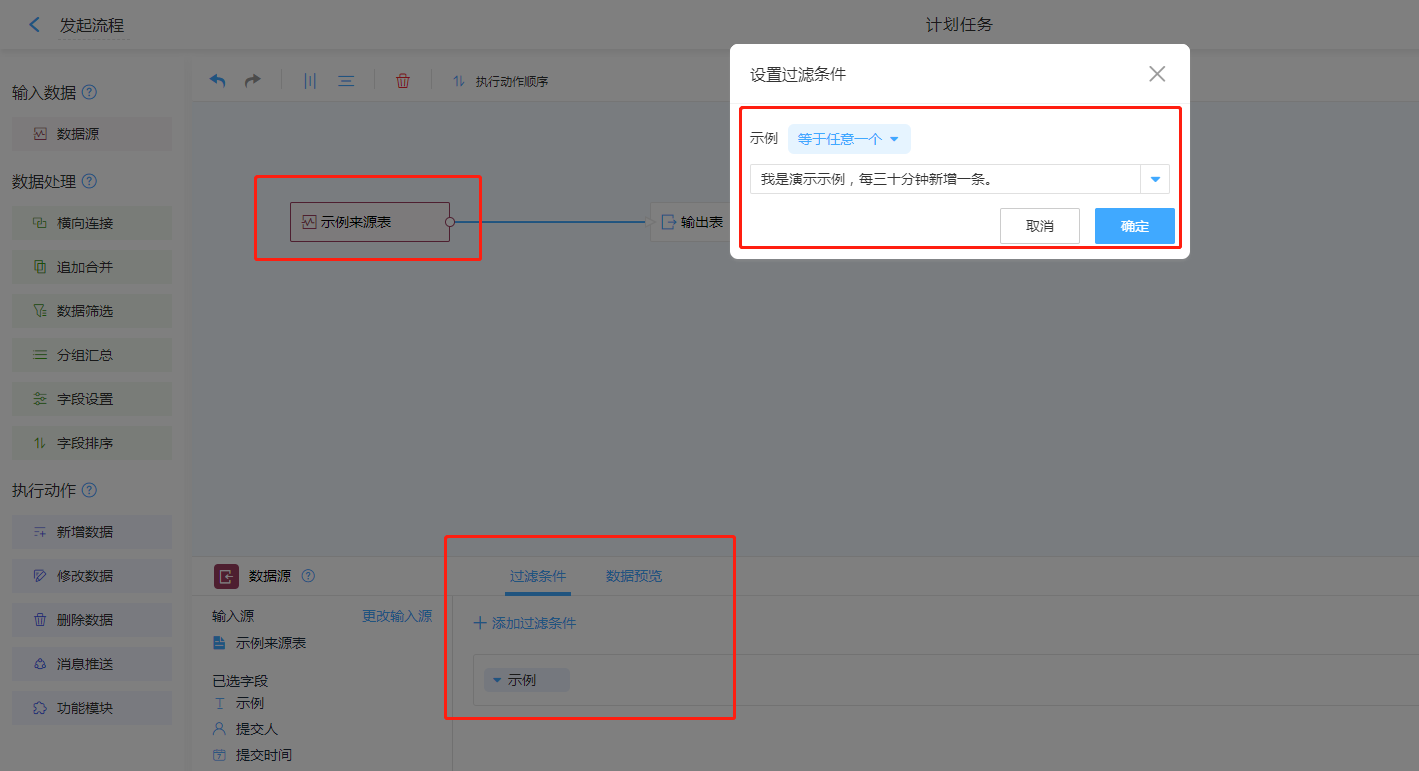 点击此链接【计划任务 - 发起流程】可以跳转至易尚云官网 >>> 解决方案 >>> 数据助手功能示例进行实际操作效果演。