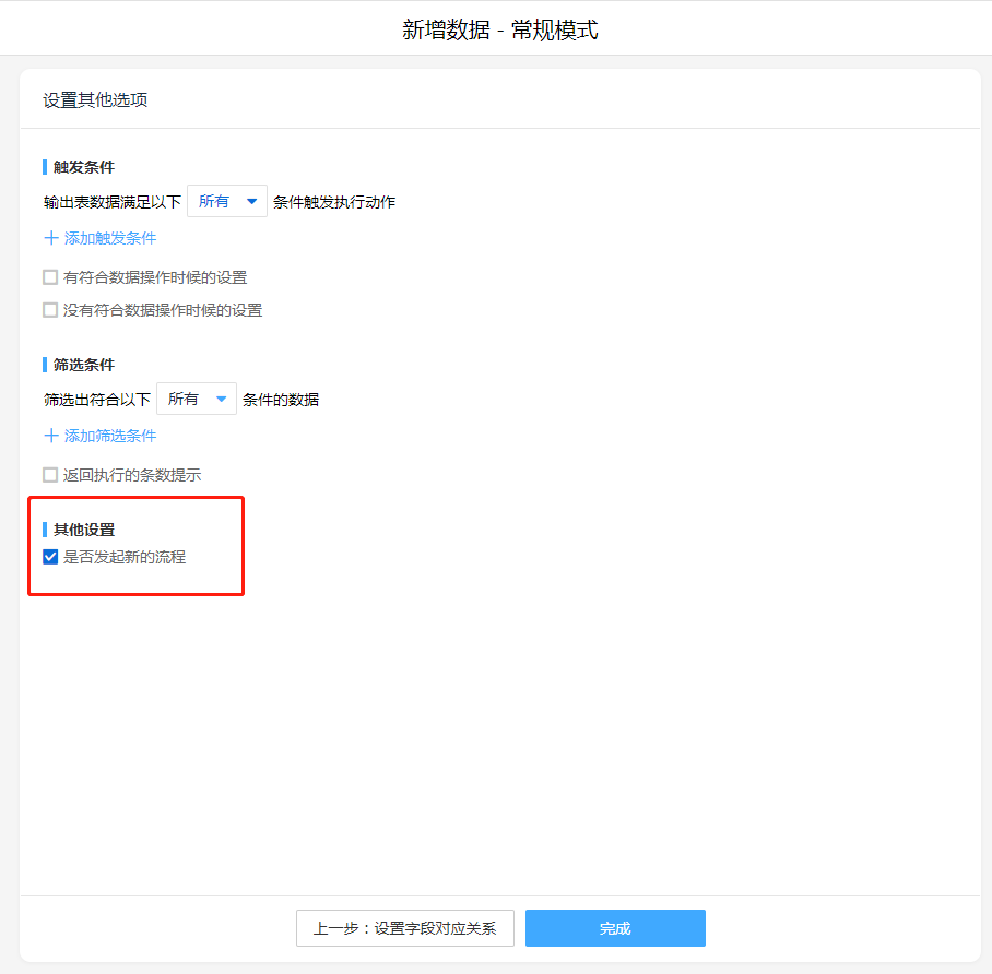 新增数据,操作模式按照实际情况进行选择,并设置字段对应关系