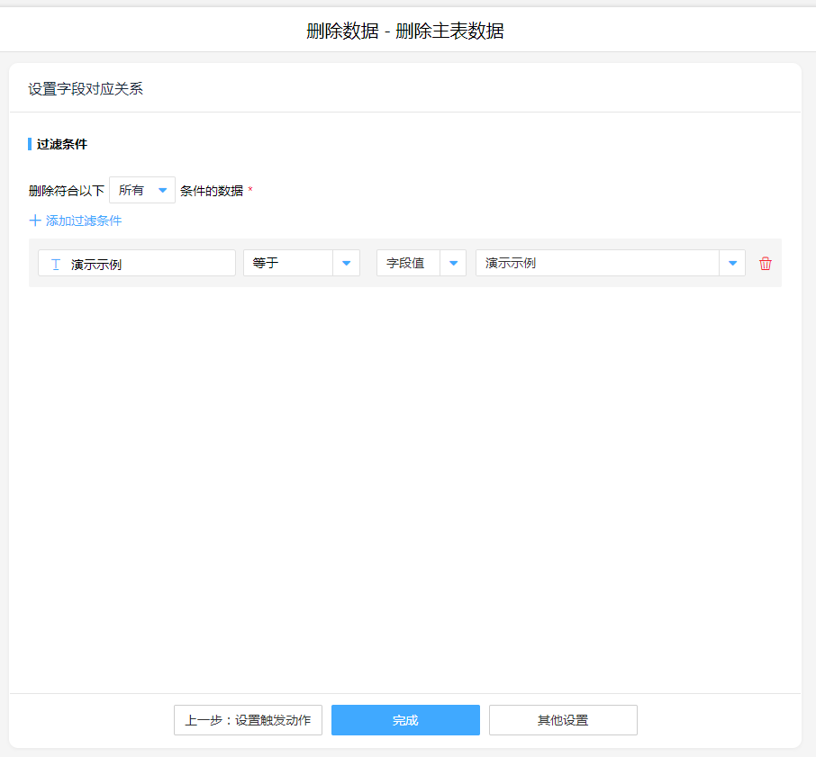 删除,操作模式按照实际情况进行选择,并设置删除条件
