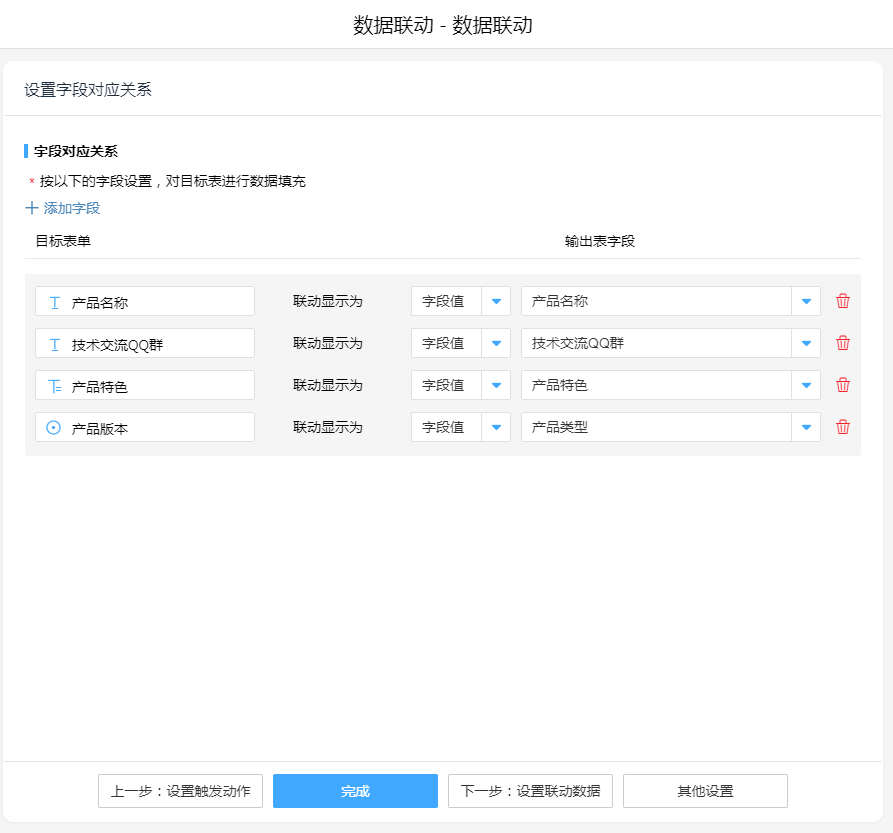 • 联动数据到当前表