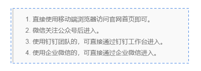 易尚云移动端的使用方法有四种,通过微信公众号、钉钉、企业微信登录的,可直接进入已绑定的账号。