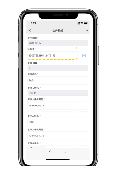 物流行业快递的揽件、收件、派件、签收环节都需要核实快递单号,使用扫码一键录入可以更快更准确地进行信息确认。