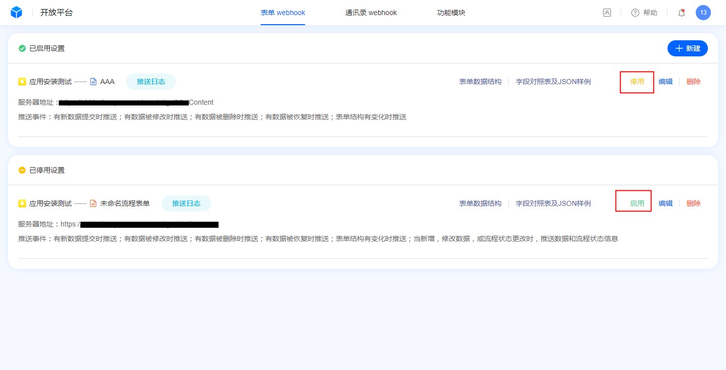 启用状态的数据推送才会进行推送,停用状态的数据推送不会推送。