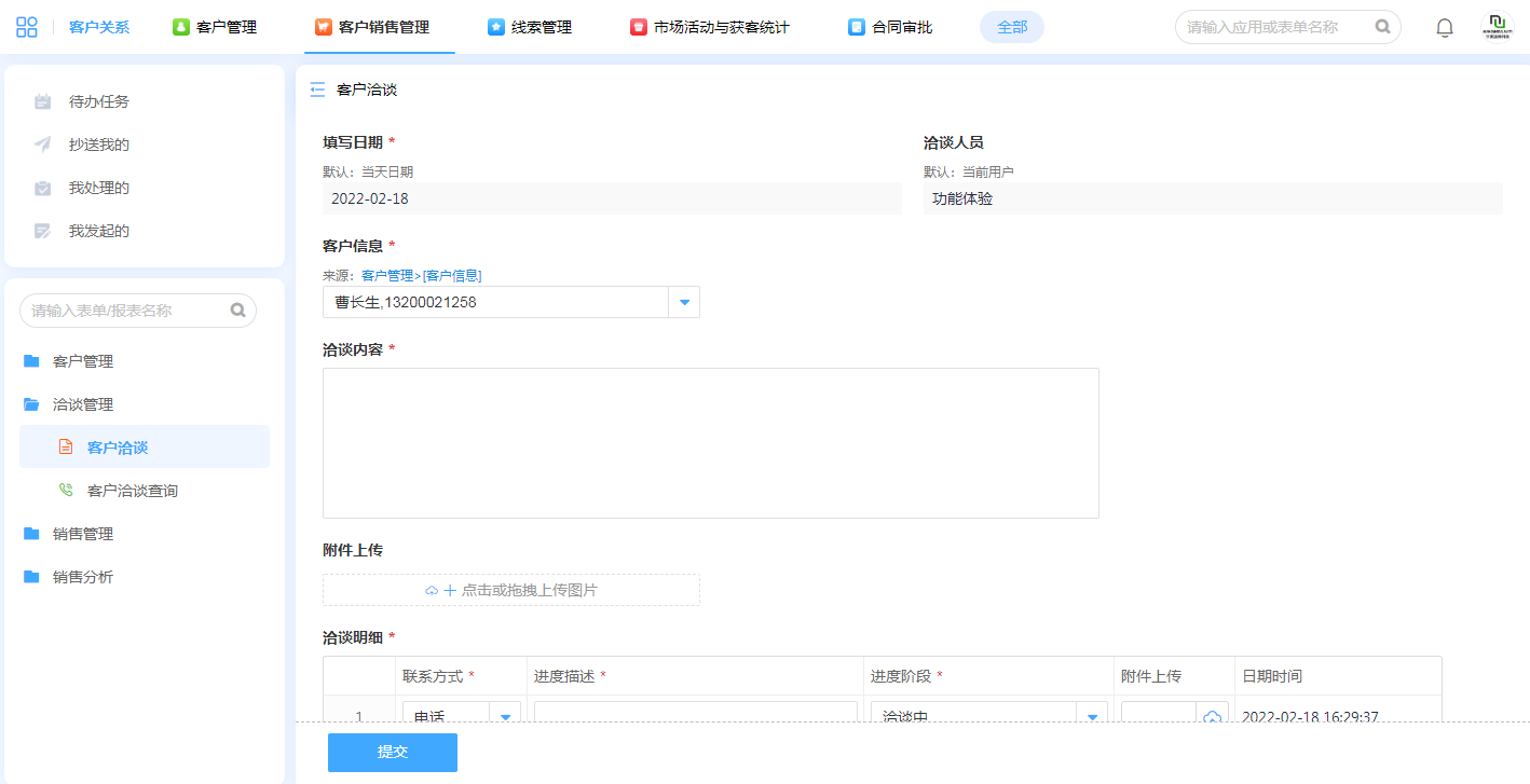 2.客户洽谈登记与查询