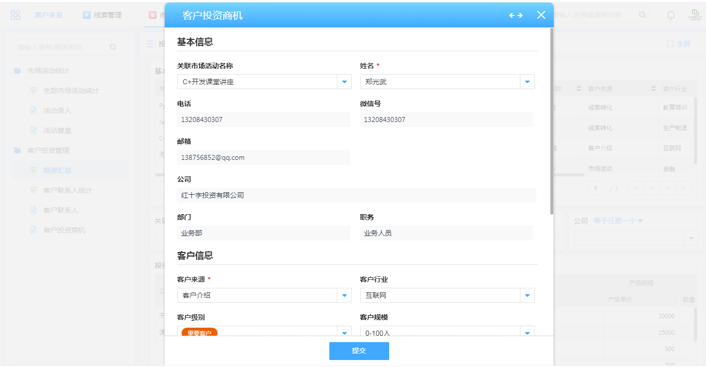 2.投资商机与客户信息汇总