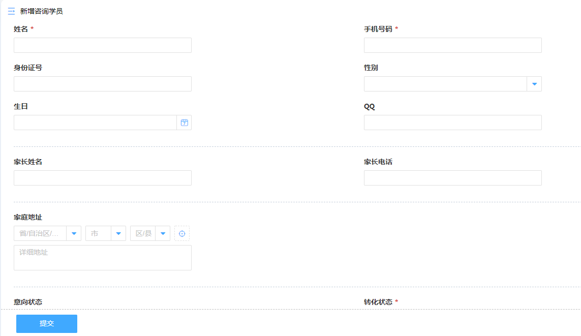 有效的管理新增咨询学员的档案信息,能够方便后续的课程咨询工作顺利进行。通过在线表单能够方便记录各项学员信息,提交过后将自动汇总到公海池总表,随时可以调用查看。