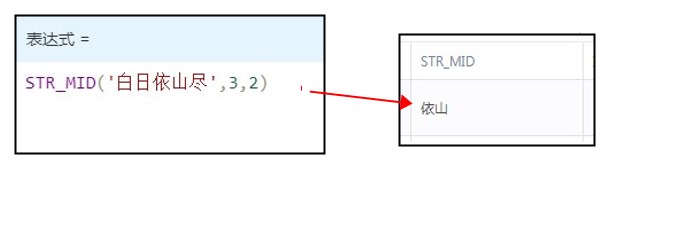 • 当start_num和num_chars为非正整数时,两个公式计算结果不一致,如MID(’白日依山尽‘,-1,1),结果为 山 ,STR_MID(’白日依山尽‘,-1,1),结果为 尽。建议避免参数为非正整数的情况。