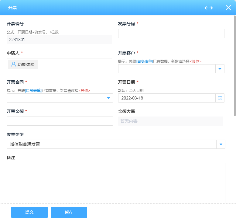 提交销售订单,借助数据加载链接商品库存可以直接生成商品信息列表,库存数量实时计算,当销售数量超过库存时将不能完成下单。