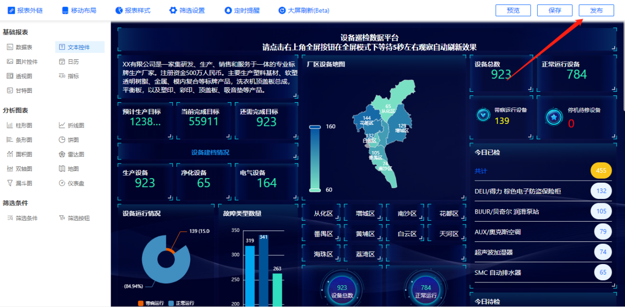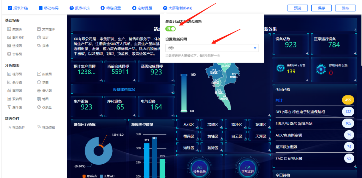为助力中小企业进行数字化转型,易尚云将报表自动刷新功能免费提供给易尚云用户,操作简单,上手极快,即使是不懂代码的业务人员按照操作步骤也能轻松实现动态大屏。