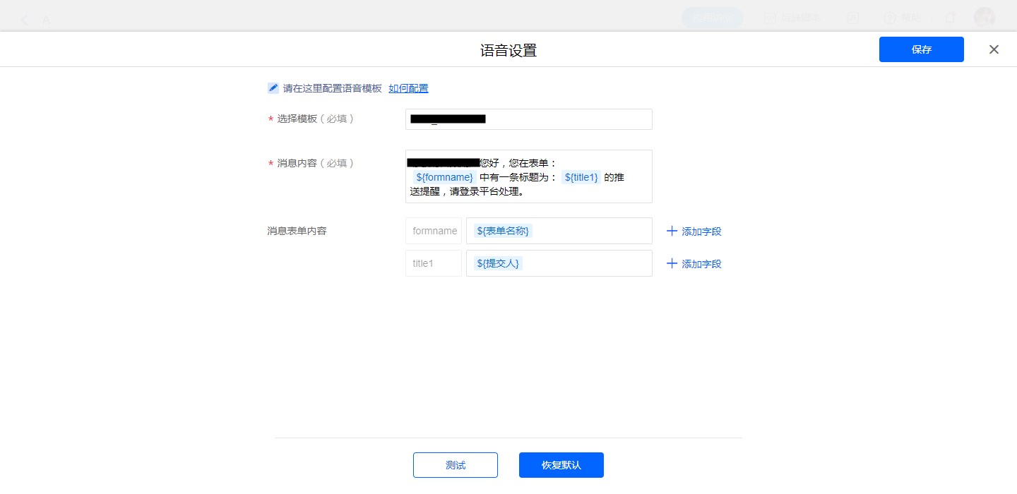 当表单有比较紧急需要立即处理的信息,我们可以选择使用“语音提醒”来进行处理。