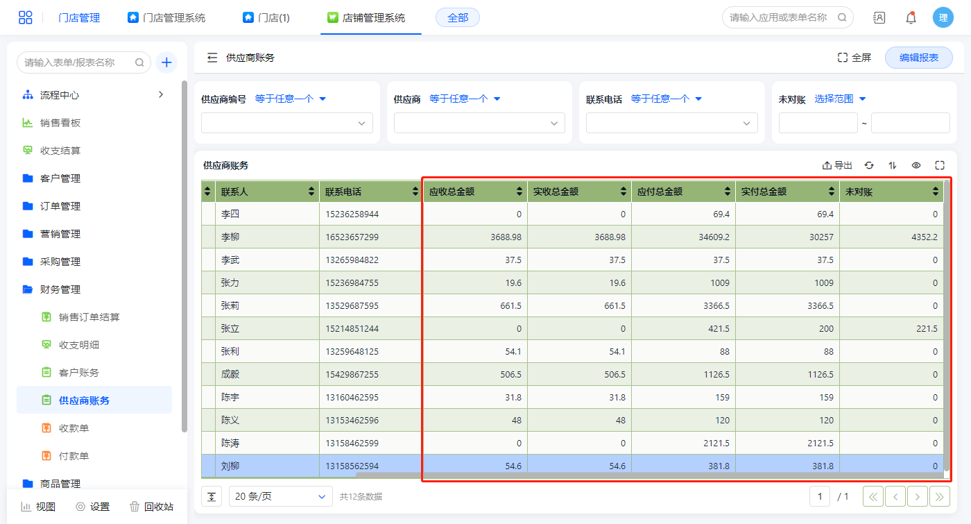 收支辅助表里的数据固定不更改,该表用于收支结算的数据视图,便于计算出收支方式的总金额,防止某一收支方式空缺时金额统计不完整的情况;数据视图的数据在收支结算报表展示;