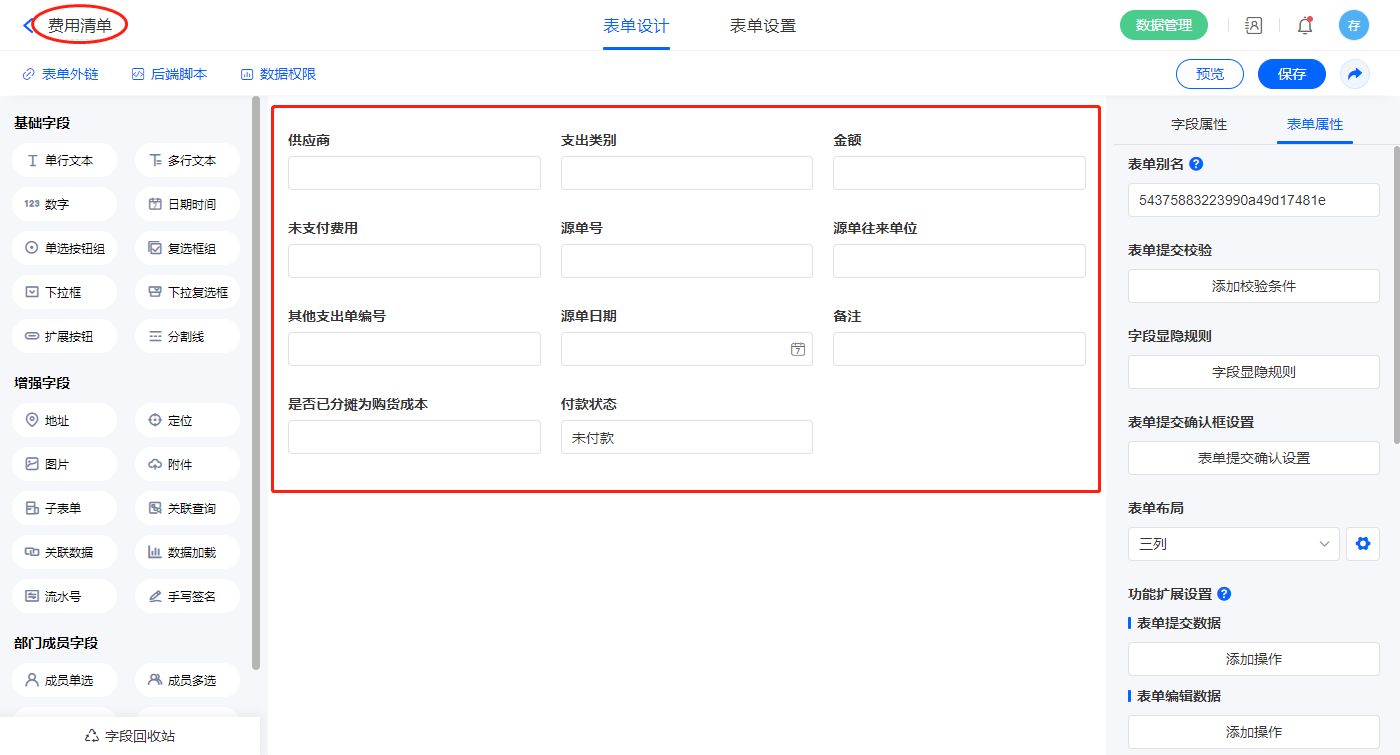 该表设置见云进销存-采购管理表单【其他支出单】字段及表单属性设置章节介绍;