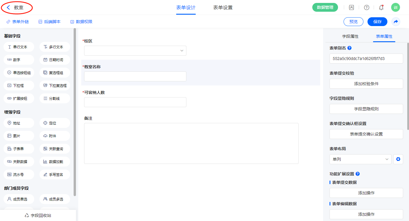 2)表单提交设置1条数据助手,名称为修改班级人数;