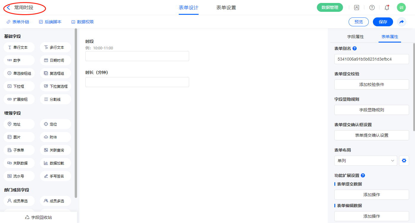 1)【当前人数】字段,默认值选择公式编辑,如图设置公式;