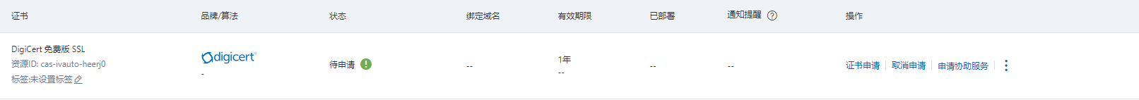 8、在证书申请面板,配置申请信息,并单击提交审核。