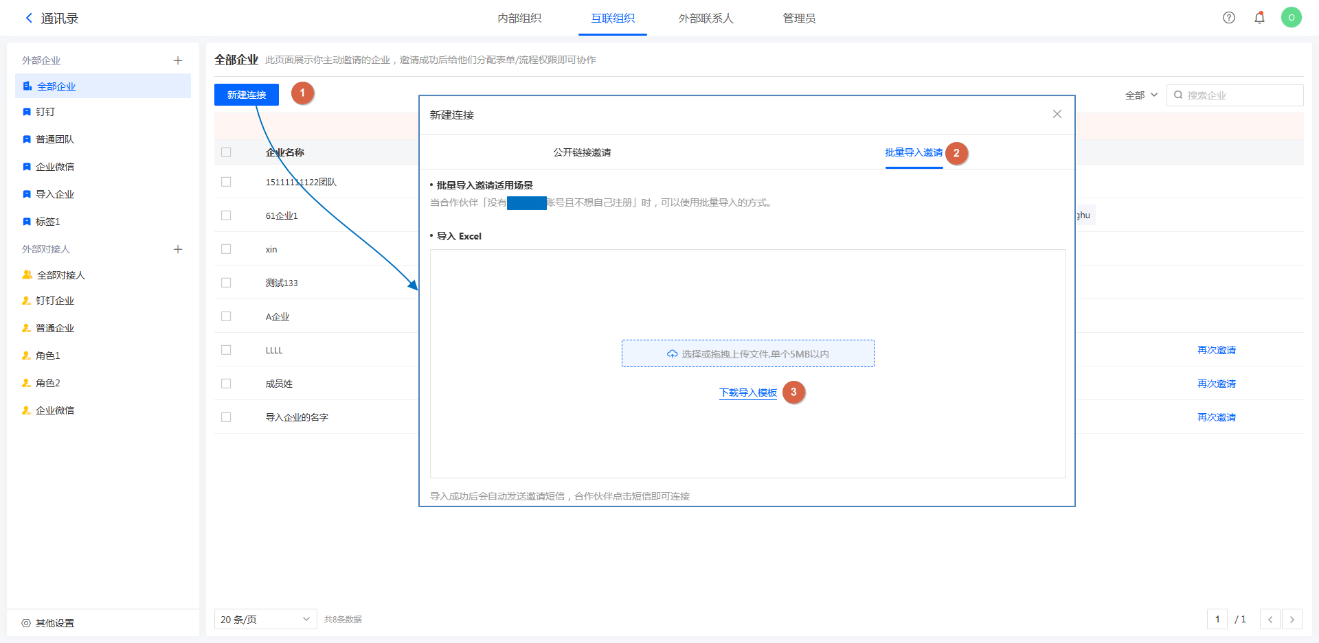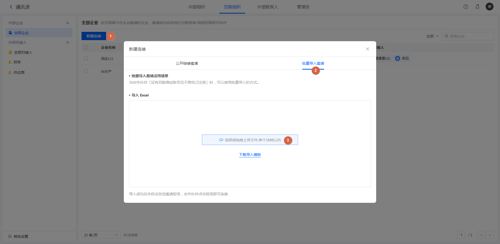 通过批量导入的方式邀请其他企业参与我方业务协作。