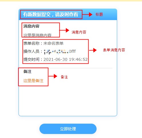 • 消息内容:支持自定义文字,以及添加表单字段。