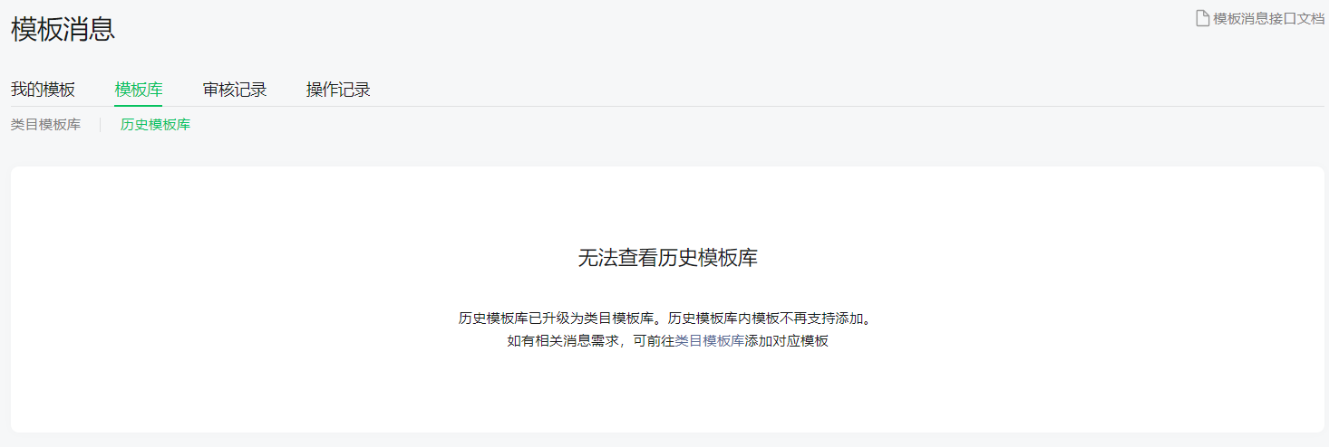由于微信更改,不再支持添加新的消息模板,使用消息模板功能需要用类目模板,已经申请添加的历史模板可以继续使用.
