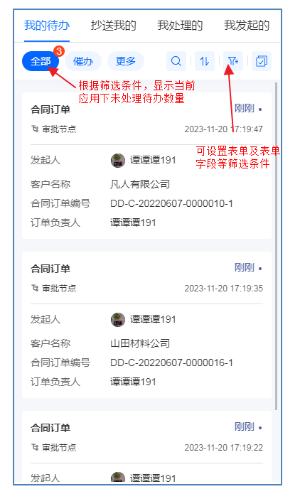 去除表单选项,默认展示所有流程表单的任务,筛选条件中增加表单筛选条件,用户可通过设置筛选条件来筛选出具体任务。