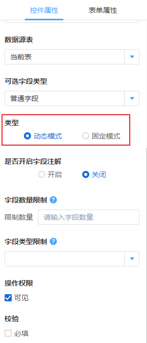 • 动态模式 指添加字段时是动态选择当前表单的字段