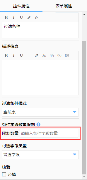 设置数量后,添加查询条件的数量将只能设置限制的数量。