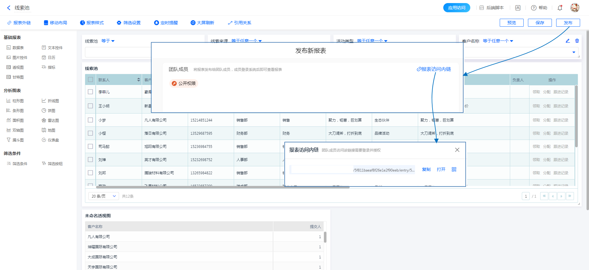 报表分享的同理,是报表内链,同样只有已加入团队的用户可以访问。