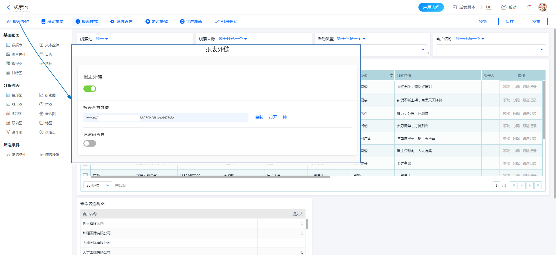 除了可以分享表单、报表外,还可以将表单中的数据发布为独立的公开链接,无需登录即可访问数据。