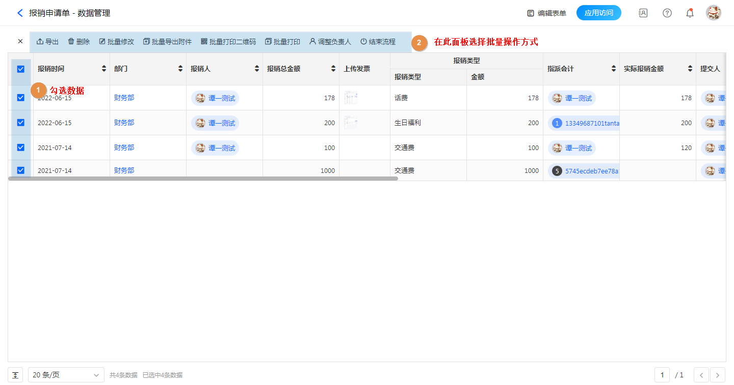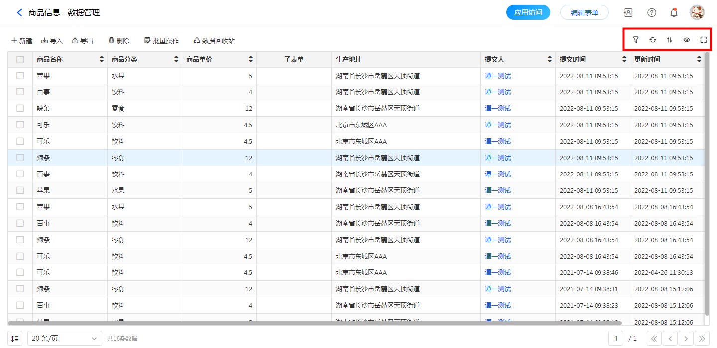 当被分享的表单被填写数据后,可以通过数据管理页面来进行管理。