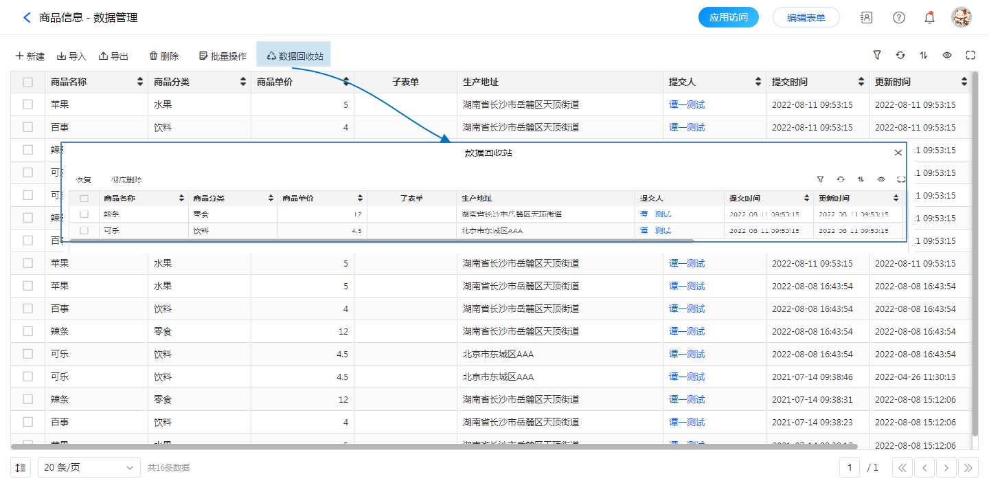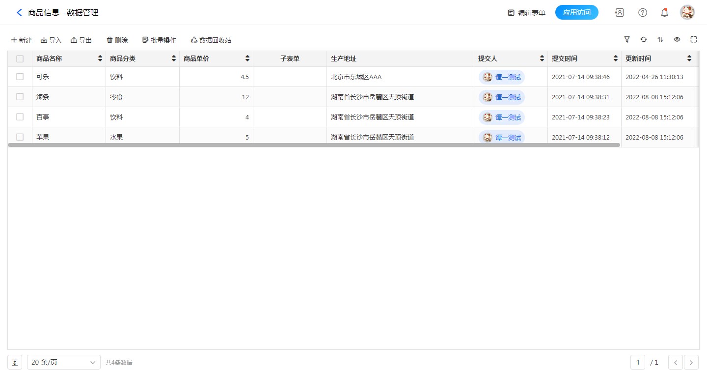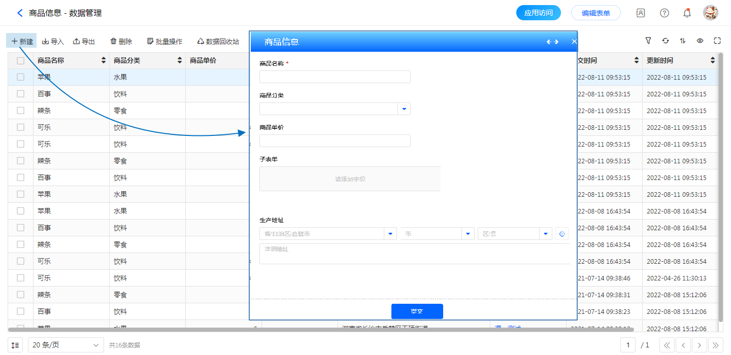 通过数据管理页面新增的数据,无视表单页面的必填选项等限制,管理员可自由录入数据。