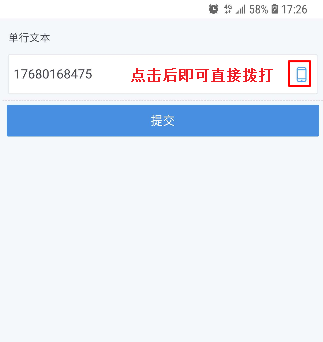 如果预设的数据格式为手机号码或电话号码,可以在移动端直接拨号。