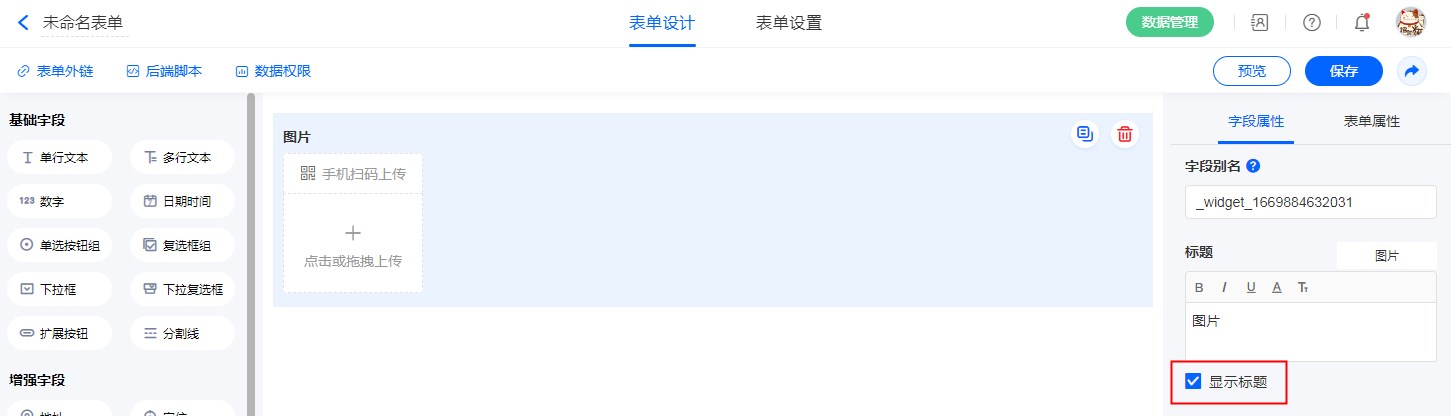“图片”专门用于上传图片,同时带有压缩上传、仅允许拍照上传等功能。