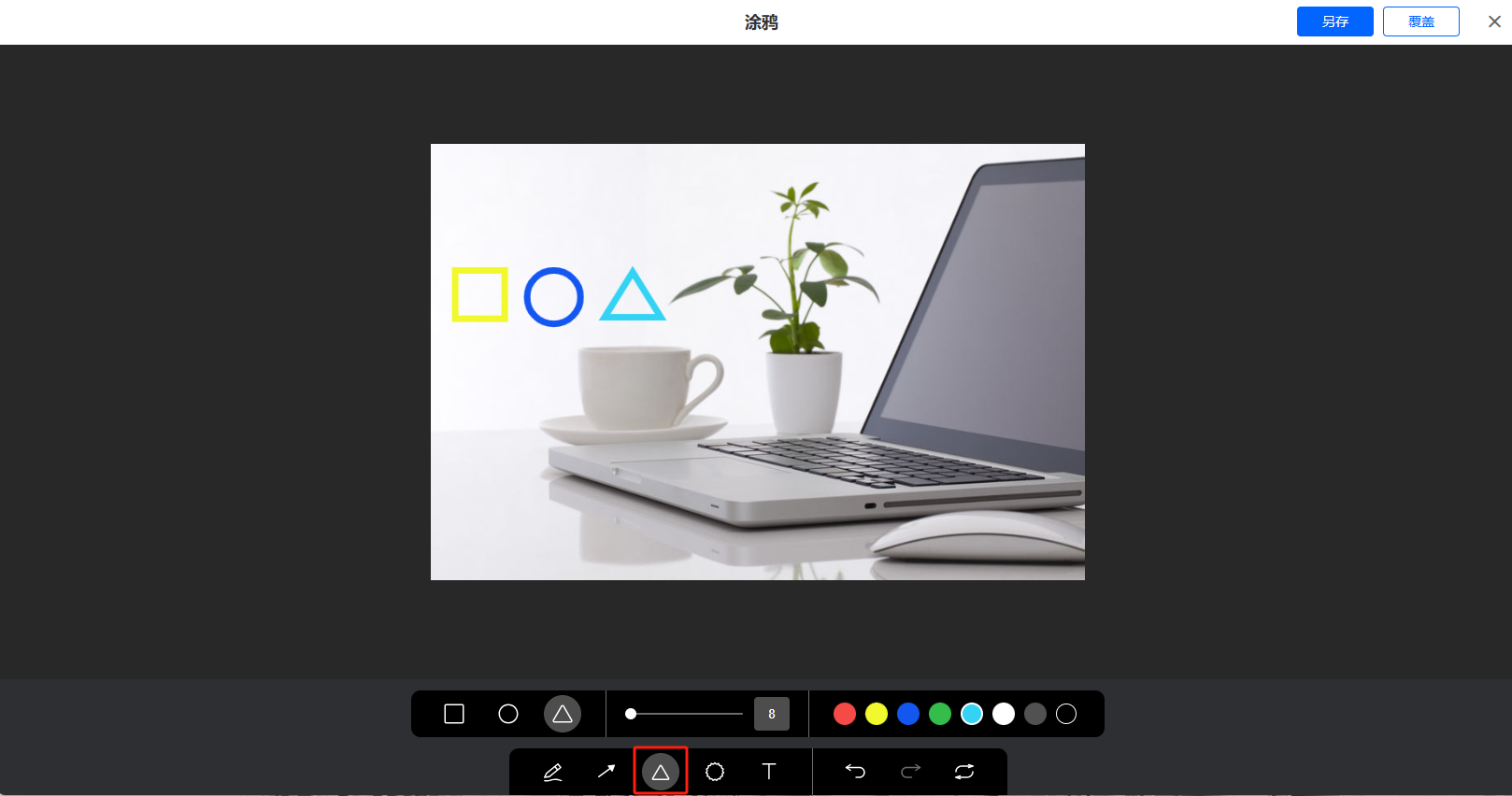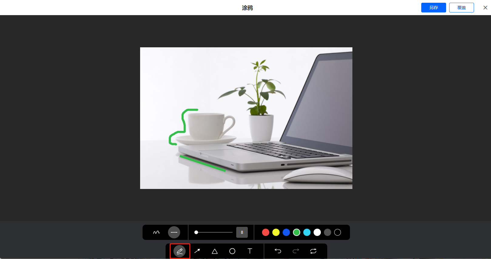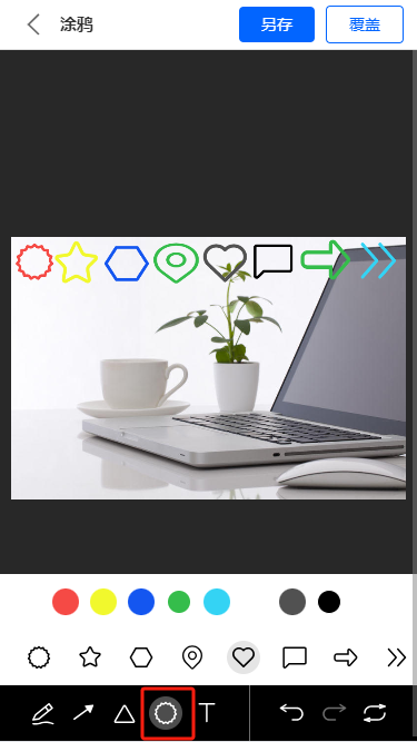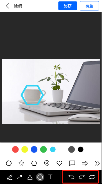 | 涂鸦右上角点击[另存] 新增图片,[覆盖]覆盖原来的图片 | ![]() |