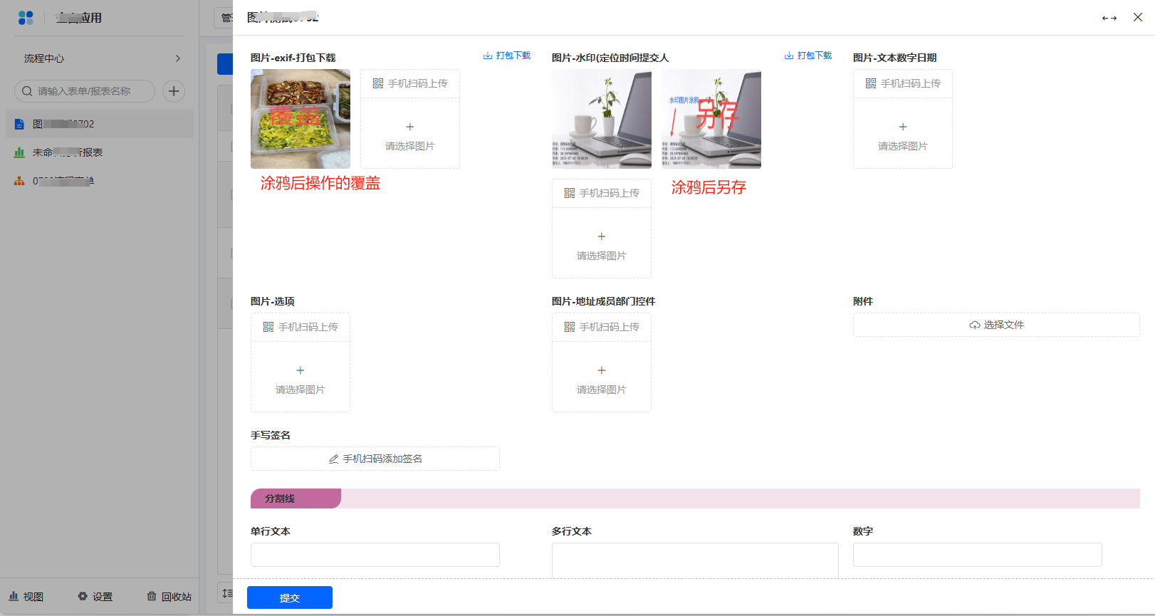 支持对表单数据编辑现有的图片、附件字段中的图片,进行快速涂鸦编辑。