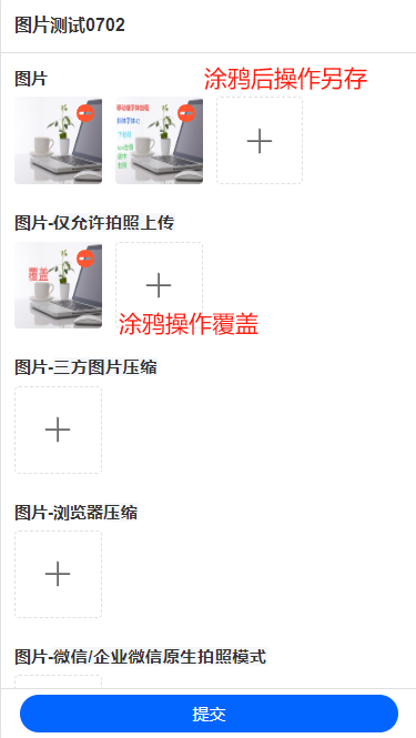 | 移动端扫码打开的链接,仅支持上传图片功能,在移动端删除图片对表单已上传的图片无影响。 |