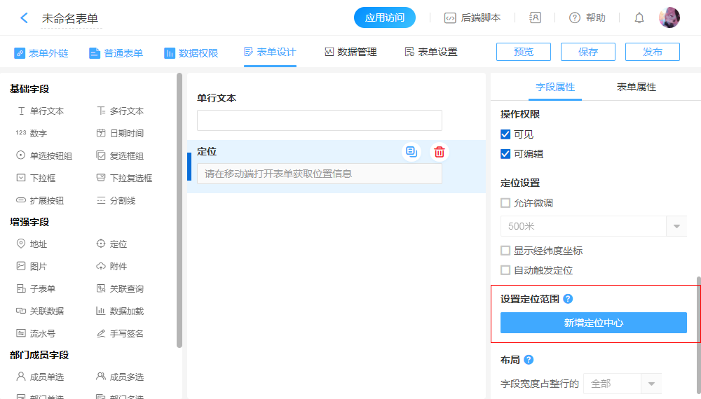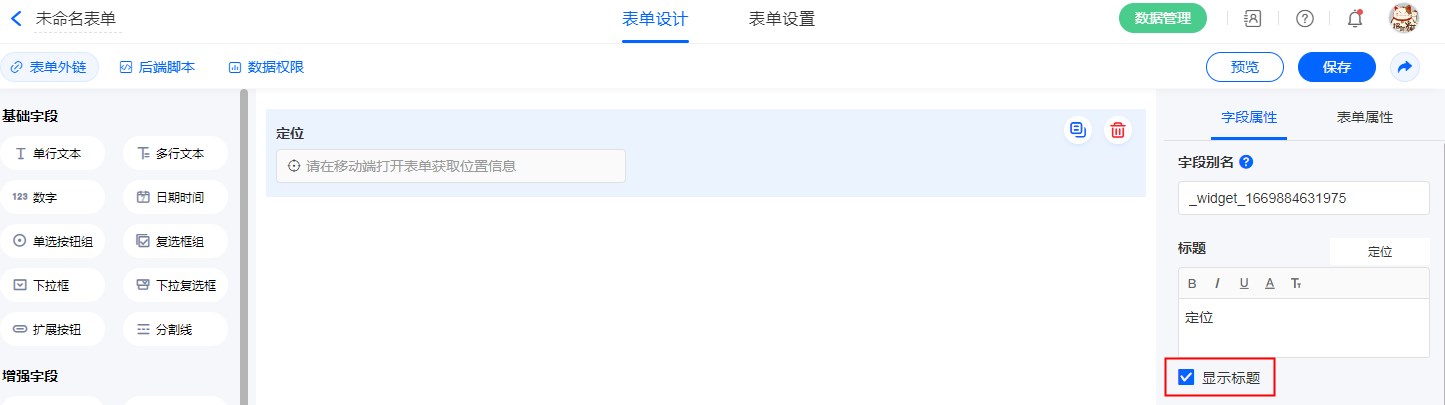 “定位”字段用于在“移动端”定位获取当前所在位置。