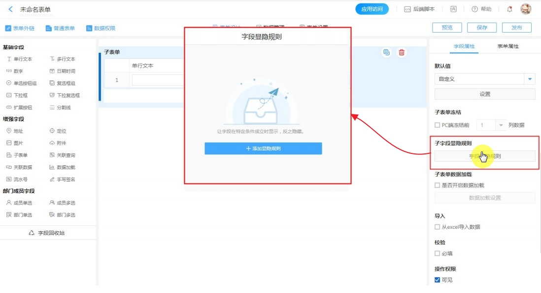 子字段显隐规则