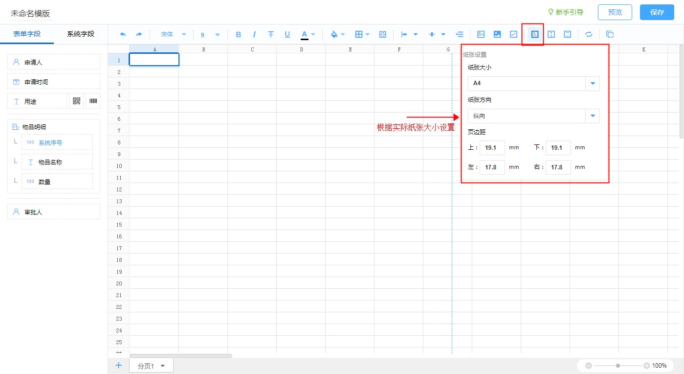 • 设计完成后,点击【预览】按钮,预览打印效果。