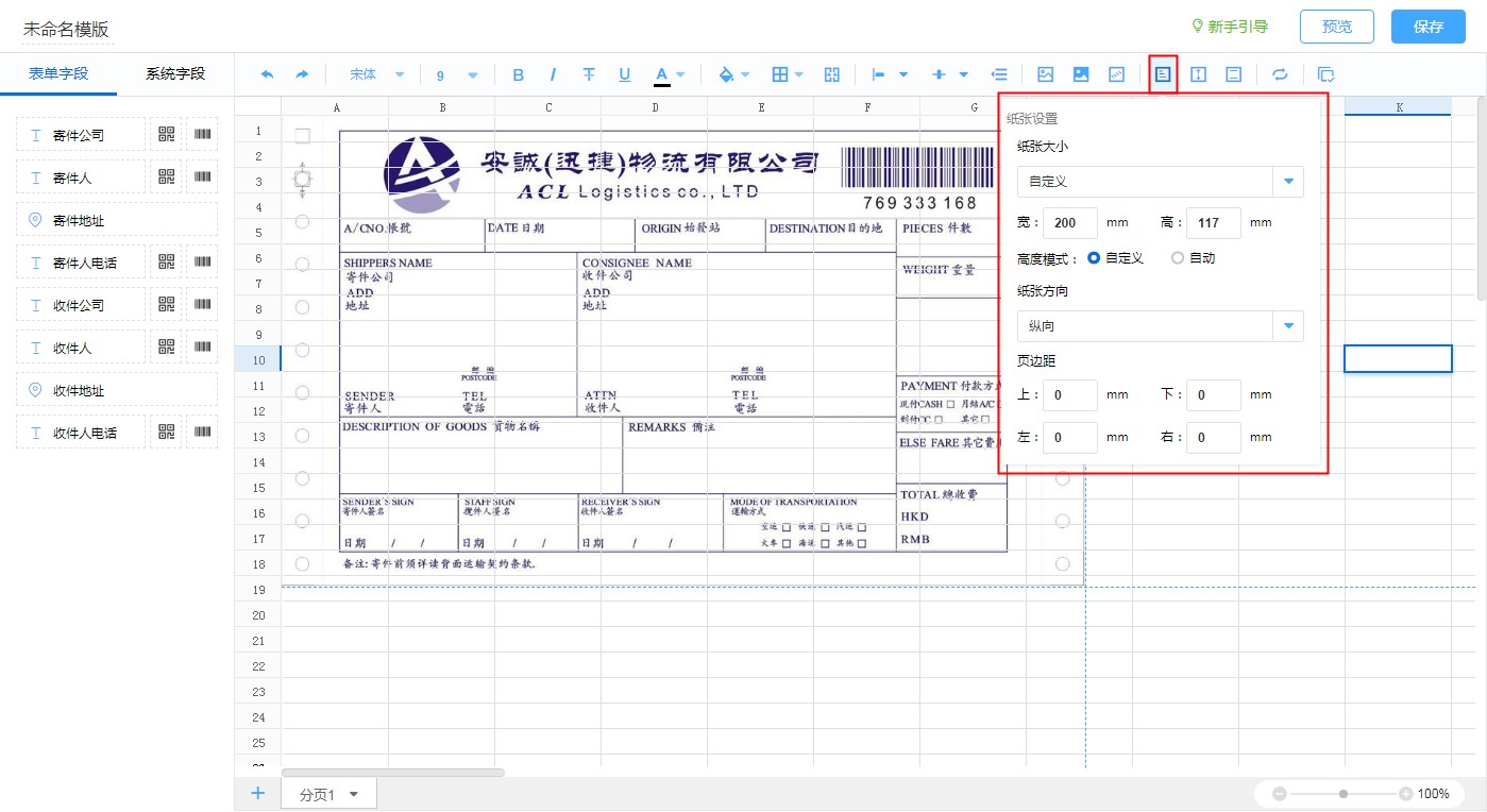 原理:先将套打页面上传为背景图,再把表单字段拖动至指定位置。