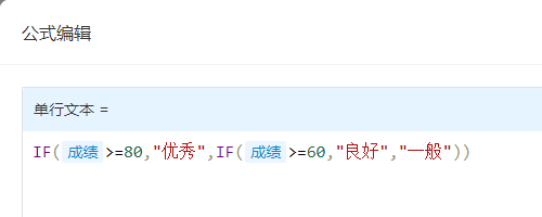 • 判断成绩大于等于80,返回“优秀”,否则判断成绩大于等于60,返回“良好”,否则返回“一般”。