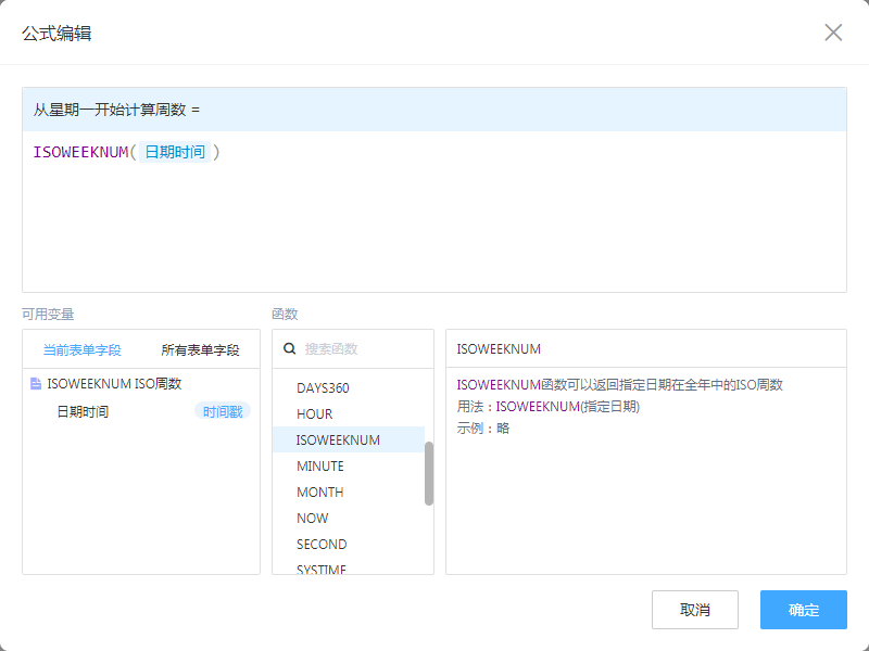 data 日期时间字段、时间戳 需要计算的日期时间字段或时间戳数值。