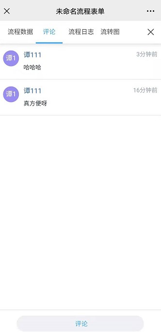 当勾选【允许查看评论】后,在查看流程数据时,可以查看当前数据的平均或对当前流程做出评论。