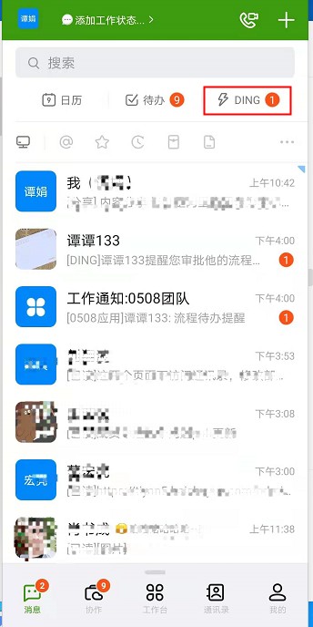 在钉钉中进行催办