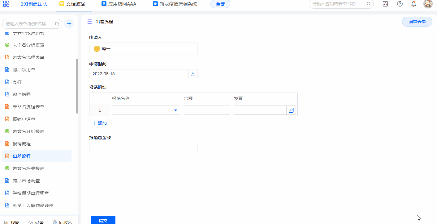 • 应用内表单管理