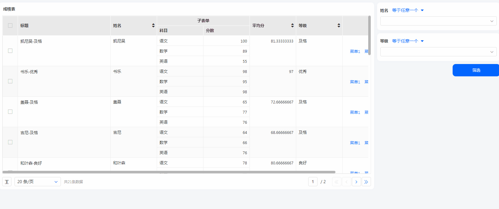 数据表中显示的数据,可以通过对过滤条件进行设置,只显示符合条件的数据。
