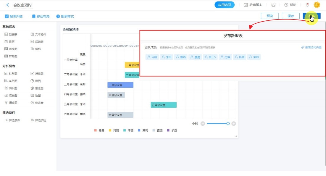2、将报表发布给成员,只有被发布的成员才能看到该报表。