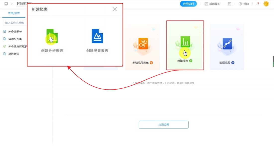 1、新建分析报表。
